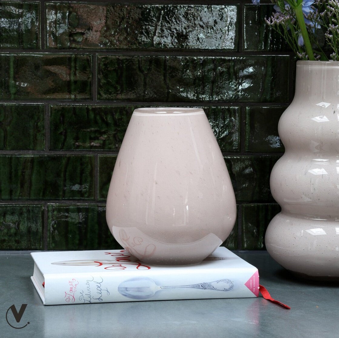 Deze collectie vazen is vervaardigd uit extra dik glas, verrijkt met subtiele luchtbellen en organische vlamstructuren. In elke ruimte zorgen ze voor een unieke sfeer, waarbij textuur, licht en kleur moeiteloos samenkomen. Elke vaas is met de hand vervaardigd en dus volkomen uniek. Verkrijgbaar in meerdere formaten en tinten, passend bij een interieur met karakter.